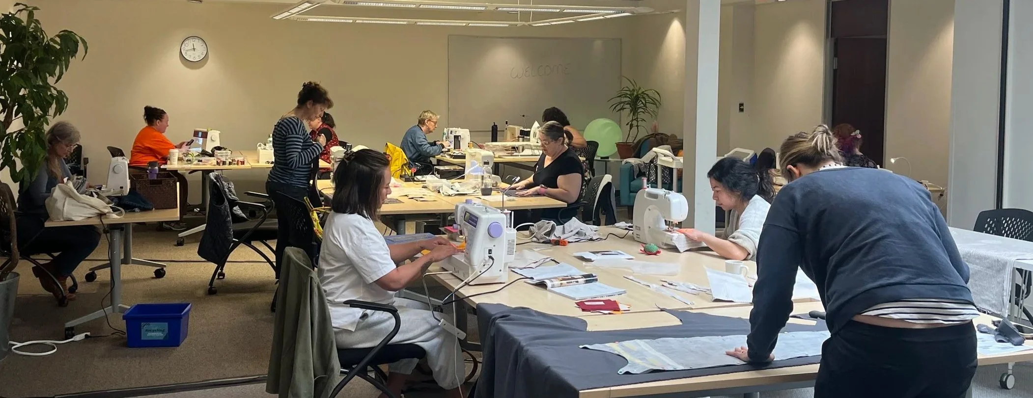 Get together with other experienced and encouraging sewists to get work done on your machine- or hand-sewing projects.